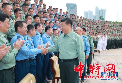 10月25日上午,中共中央总书记、国家主席、中央军委主席习近平到南部战区视察调研。这是习近平亲切接见驻广东部队副师职以上领导干部。 新华社记者李刚 摄